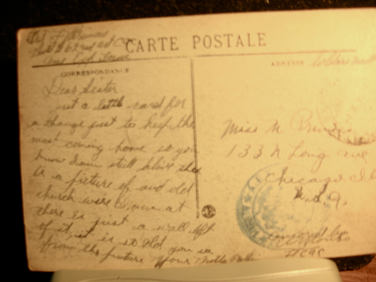 Postcard sent to Millie from her brother Frank in the Army