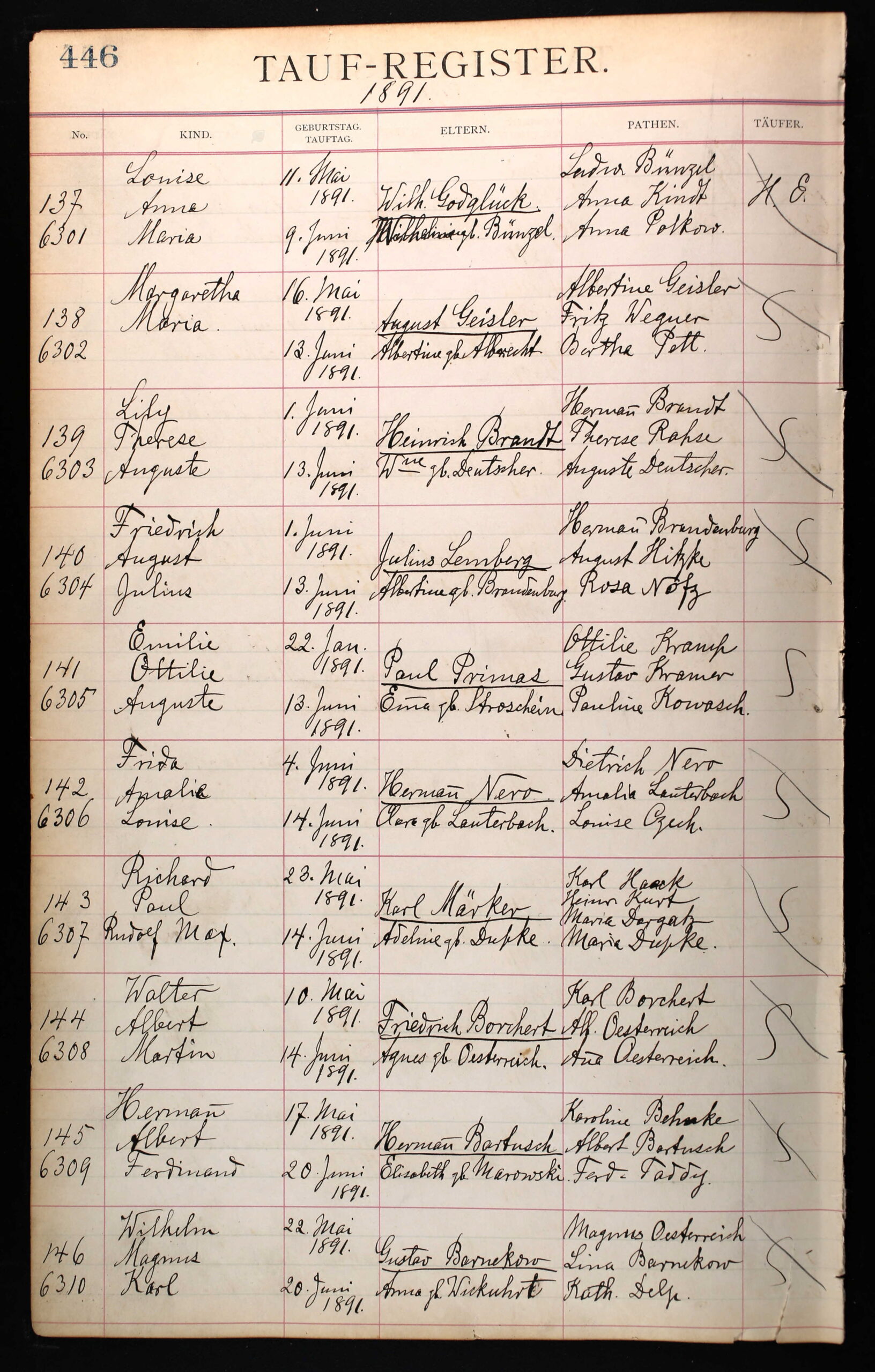 Later I found Millie's baptismal record at Saint Mathew's Lutheran Church in Chicago. Her baptismal name was Emilie Ottilie Auguste Primas, baptised on 13 Jun 1891.